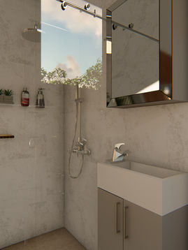 This tiny house is a beautiful classic with hints of wooden accents that bring out the enchanting design elements. Its wooden frame door with black trimming frames up the panoramic views of the outdoors perfectly.